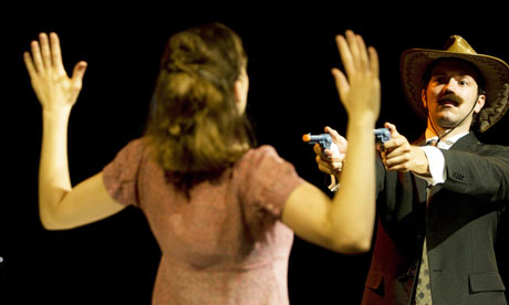 Theatre company Inspector Sands mix comedy, physical theatre and witty dialogue to create a madcap world that is utterly engaging. This is one of those shows where it is hard to define exactly what it is that makes it work, or indeed what exactly the plot is. The piece works on multiple levels, each allowing the audience to make their own interpretation. It would be easy to dismiss this show as purely a whimsical piece of physical comedy but there is a much darker emotional heart beating here. There are some impressive visual moments but these serve to add to the emotional turmoil the couple face rather than detract.