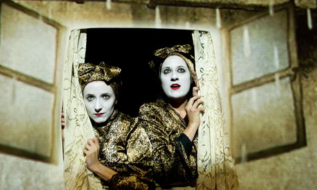 An early showing at the Cabaret arena saw the anarchic world of Peenut and Ribbon, two hooligans who would struggle to find a brain cell between them. Slingshot Theatre’s Zanniskinheads and the quest for the Holy balls is a surreal mix of mask work, slapstick, and multi linguistics. While performed with conviction it is hard to warm to the piece or to really engage in the madcap plot.
